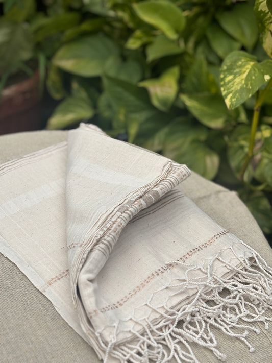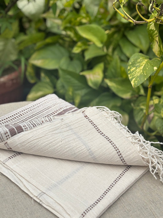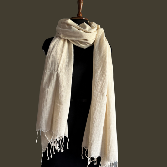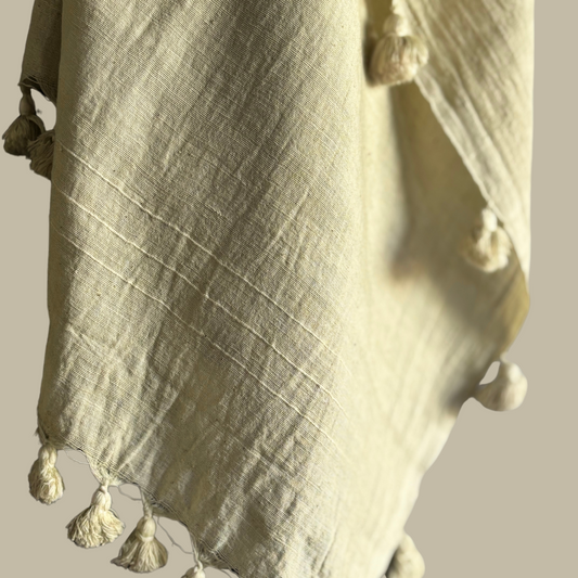 Kora Khadi Handspun Cotton Dupatta with Hand-Twisted Tassels