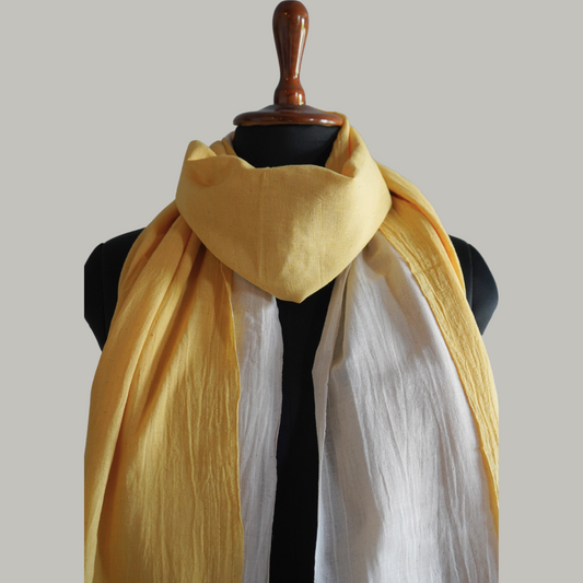 Dual Tone Handwoven Cotton Dupatta – Yellow & Beige