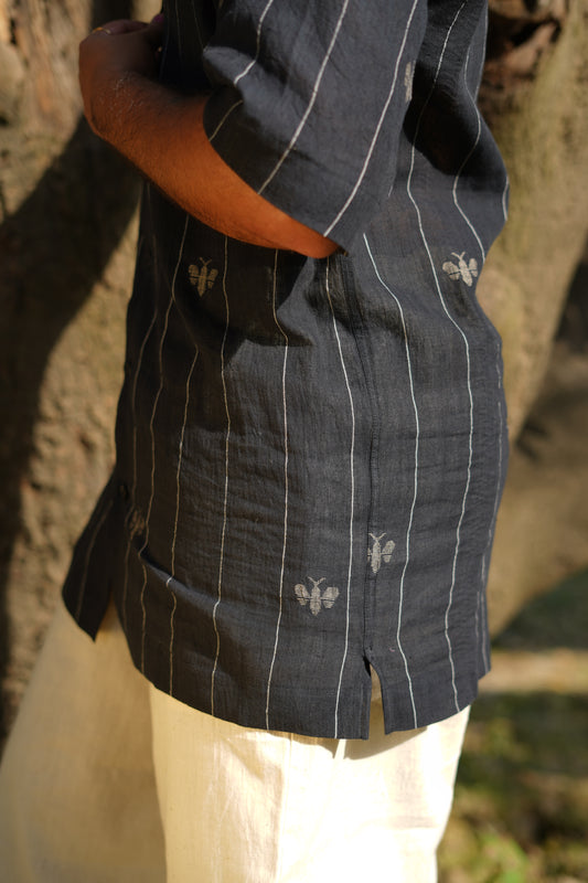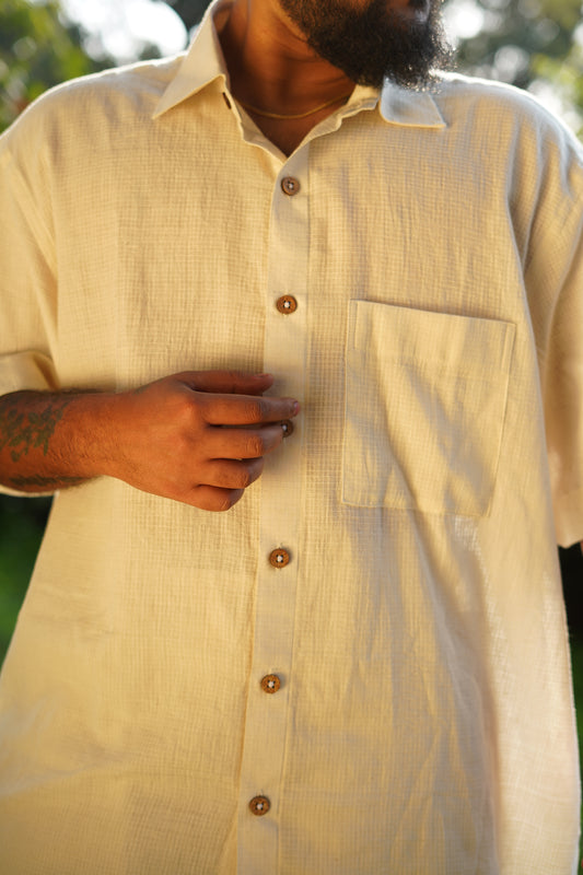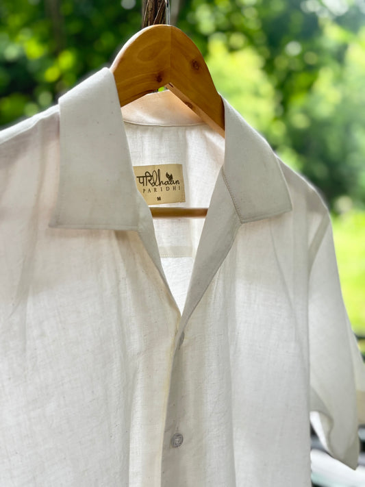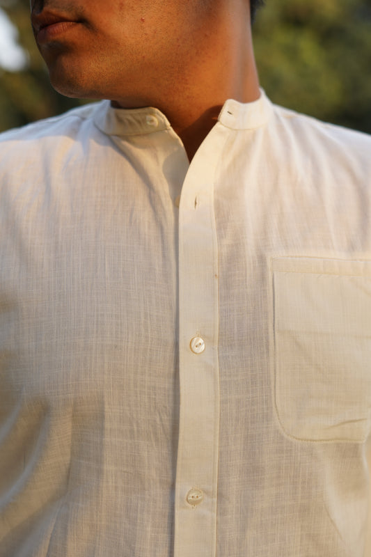 Off White Natural Khadi Chinese Collar Shirt - Handspun & Handwoven