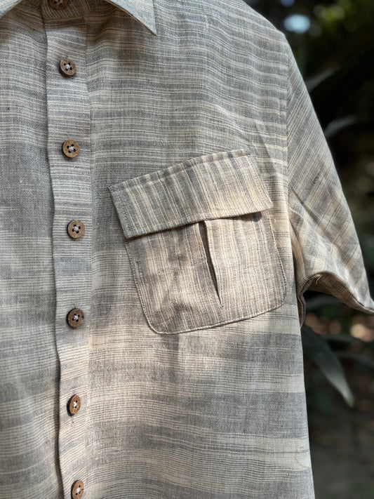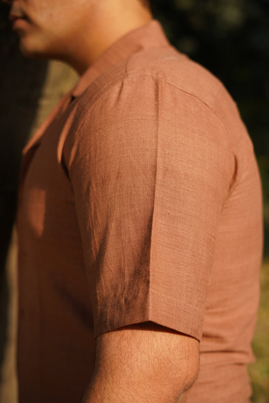 Cuban Collar Two-Tone Handwoven Shirt - Brown & Kora