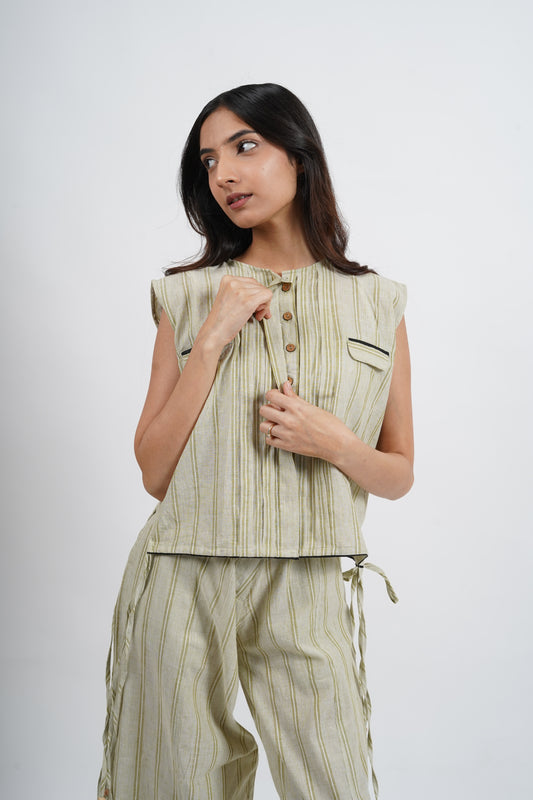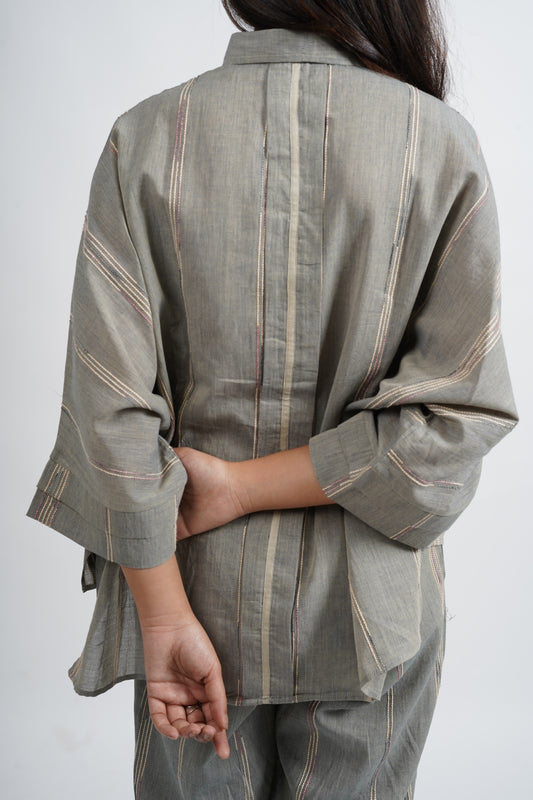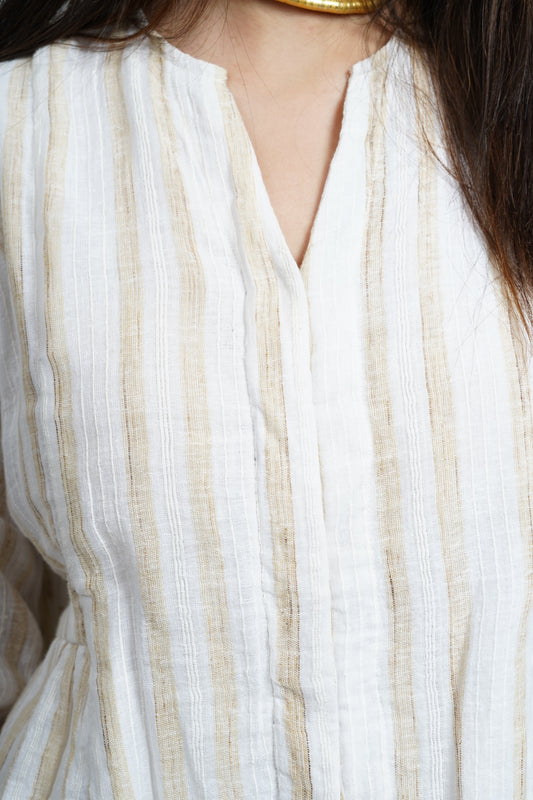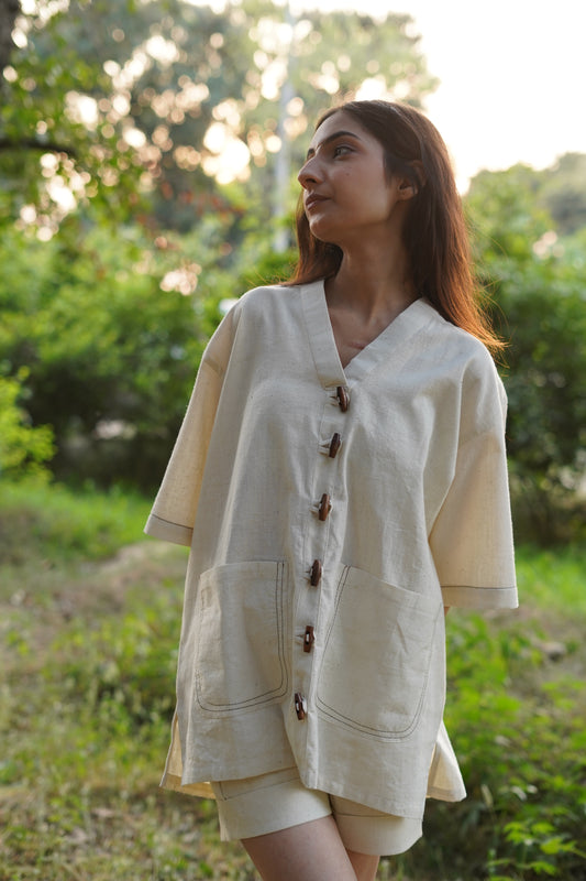 Kora Handspun Khadi V-Neck Shirt Style Top