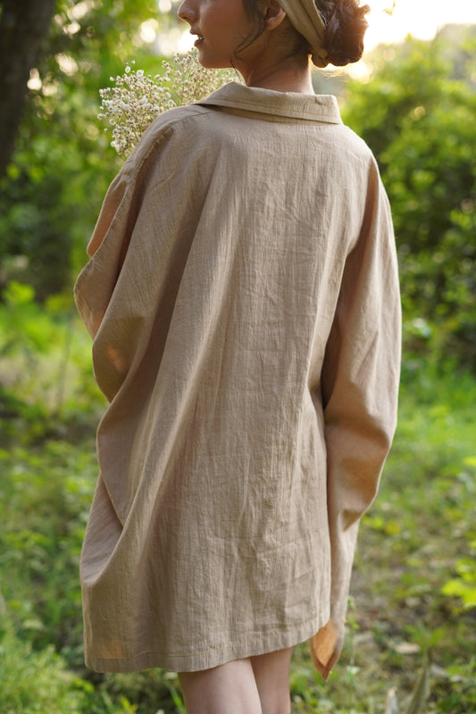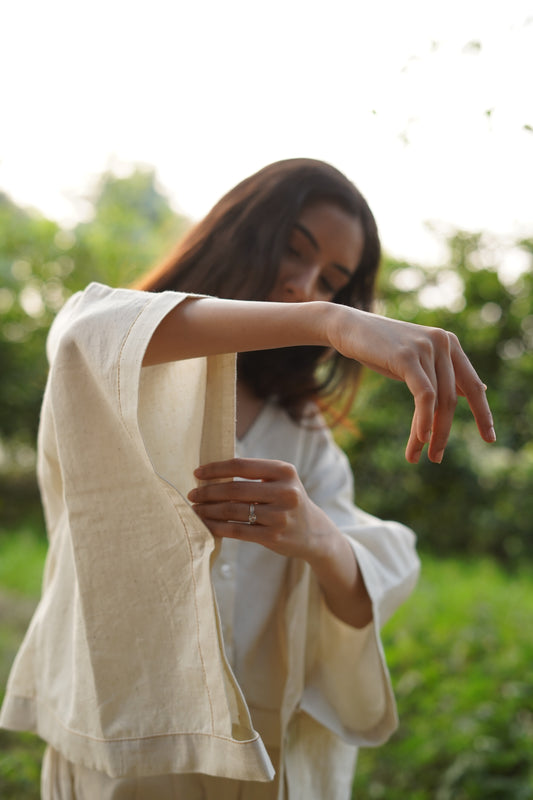 Kora Natural Khadi Kaftan Top - Handwoven & Handspun