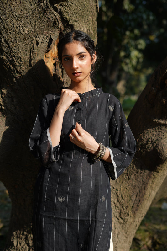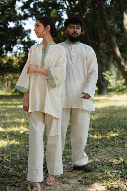 Handwoven Checkered & Solid Kurta - Available in 2 colors