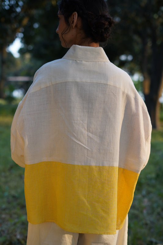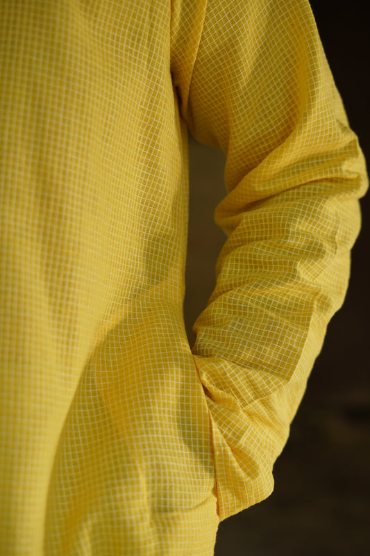 Sunlit Grid Handwoven Oversized Shirt - Yellow & kora