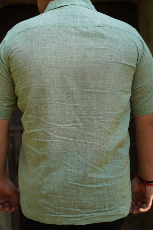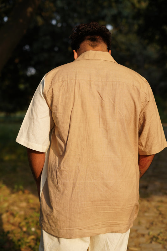 Cuban Collar Two-Tone Handwoven Shirt - Brown & Kora