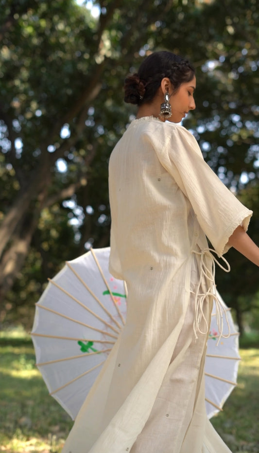 Cocoon Jamdani Short Kurta - Off White Handwoven